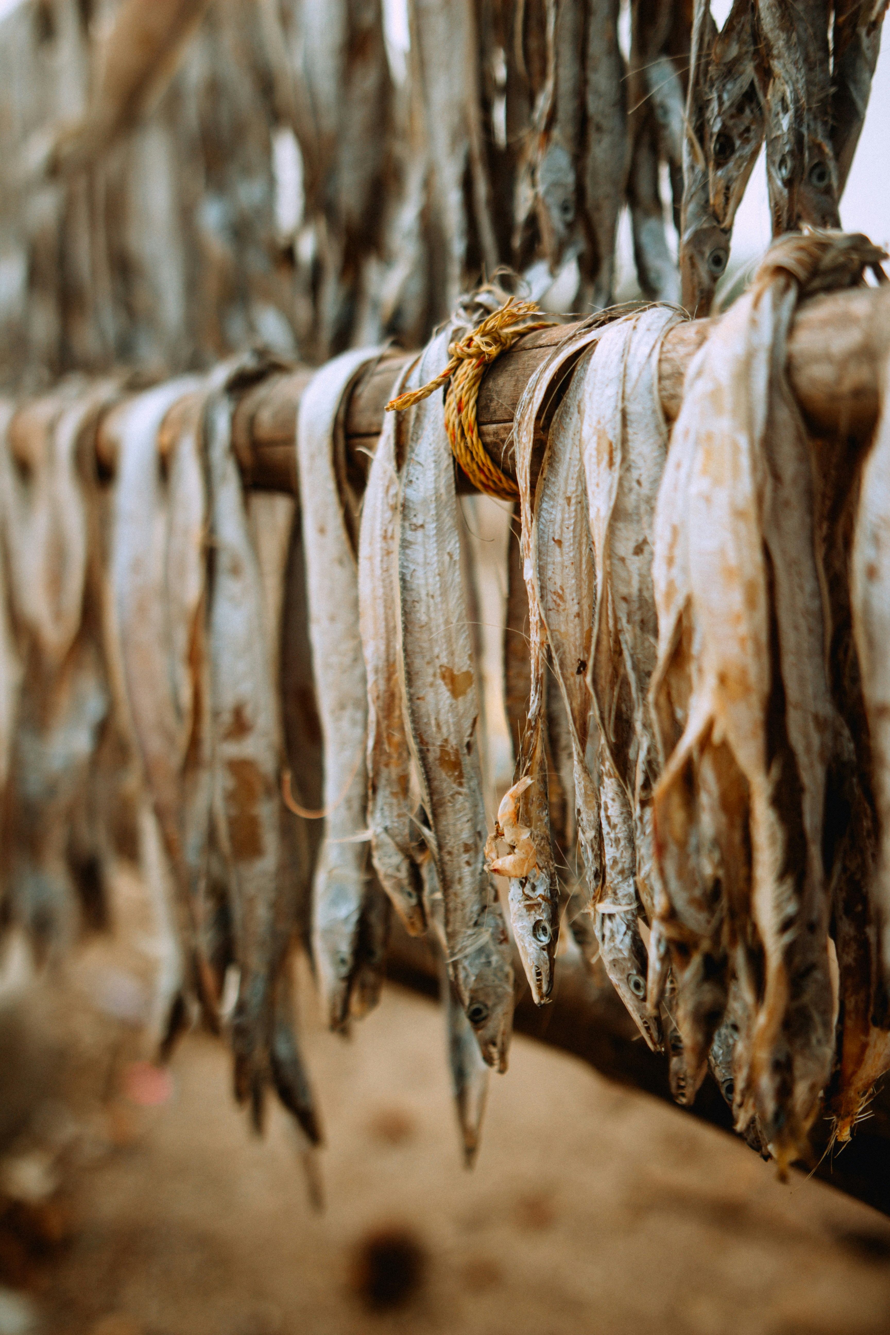 In many coastal regions you will find fishes hung on sticks and sun dried.