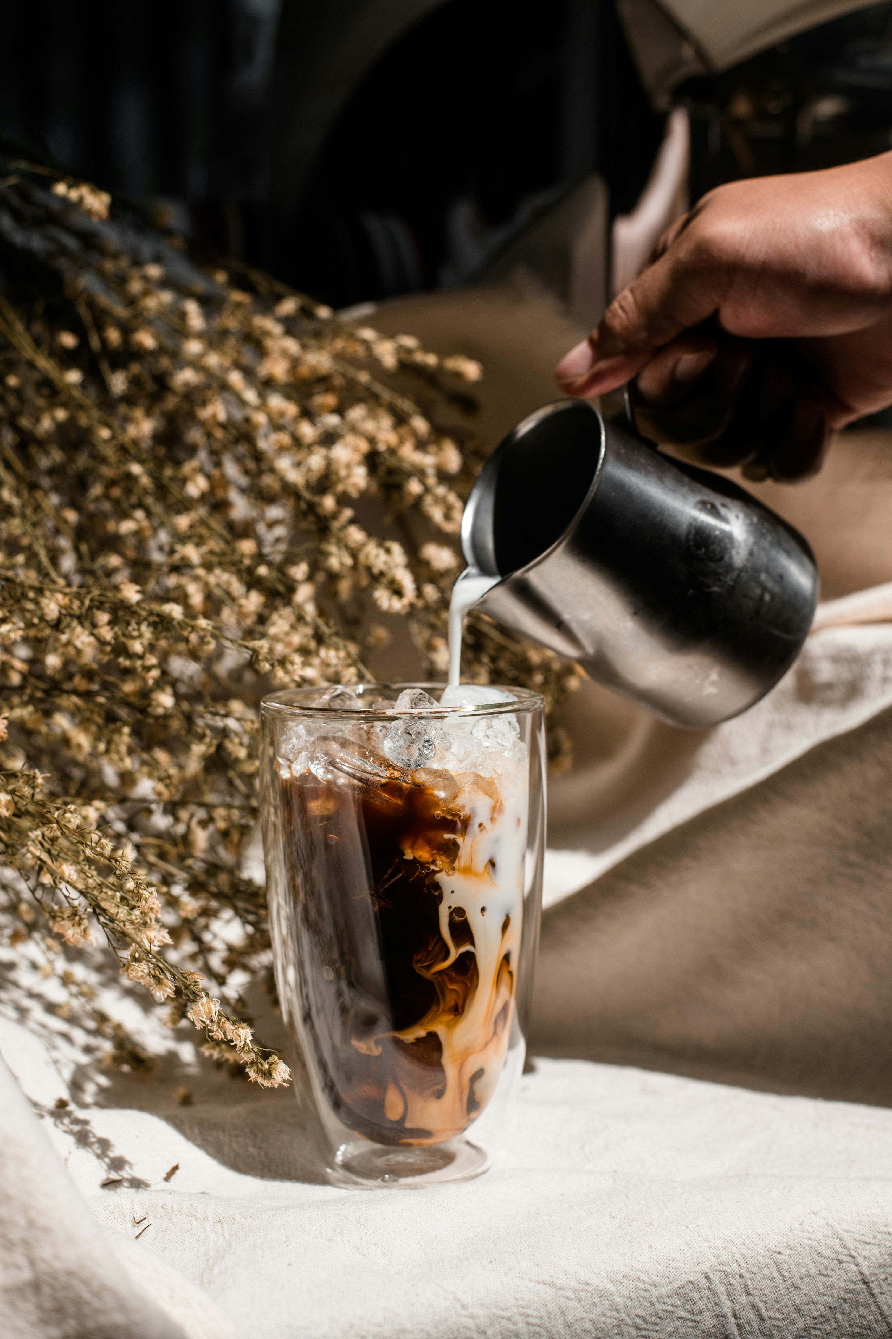 3. Pour the condensed milk mixture into the espresso shot and stir to combine.