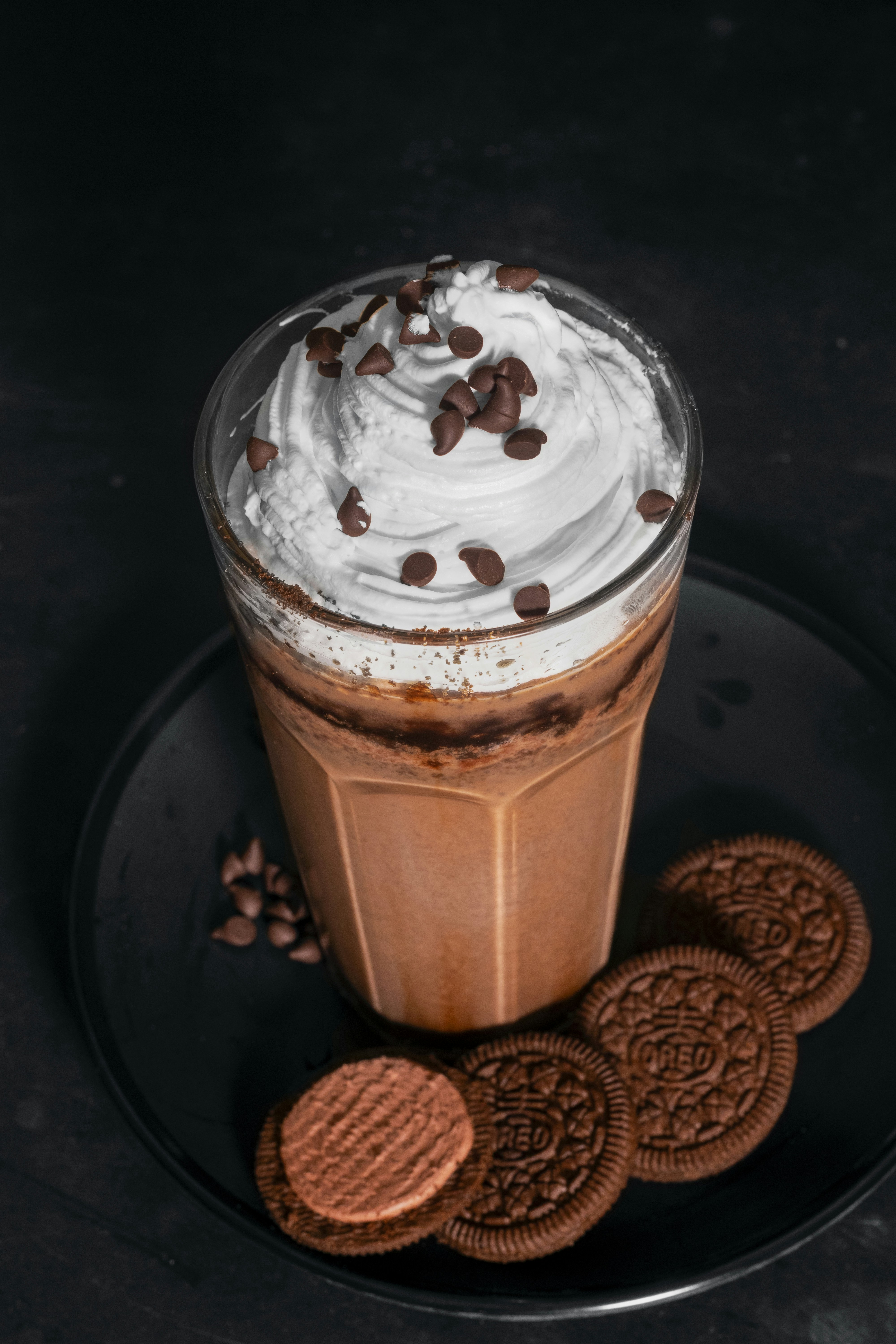 The Java Chip concoction commonly includes espresso or coffee, chocolate syrup or sauce, milk or cream, ice, and sometimes flavoured syrups or whipped cream for added richness.