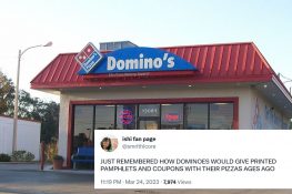 JUST REMEMBERED HOW DOMINOES WOULD GIVE PRINTED PAMPHLETS AND COUPONS WITH THEIR PIZZAS AGES AGO